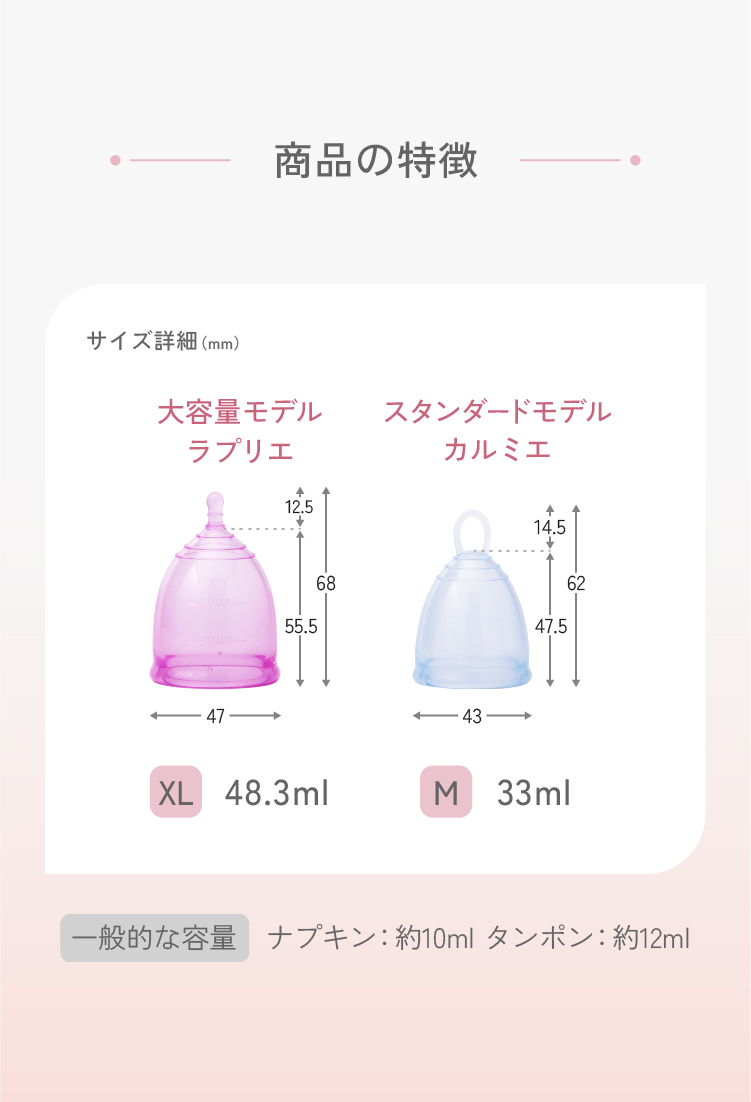 経血量が多い方や、なかなか交換ができない忙しい方向けの最大容量モデル。